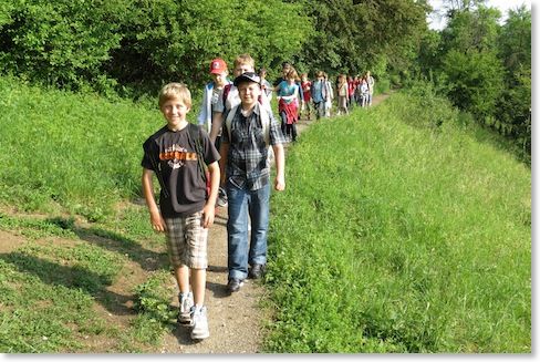 Die Kinder der Klassen 1a/b beim neugierigen "Besitzergreifen" und "Erfassen" einer Plastik von