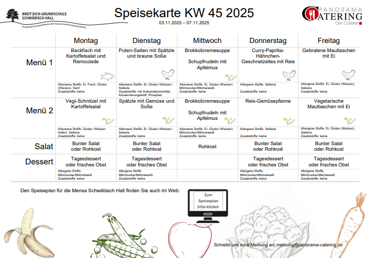 Den aktuellen Speiseplan für unsere Schule von Panorama Catering kannst du nun auch hier abrufen: